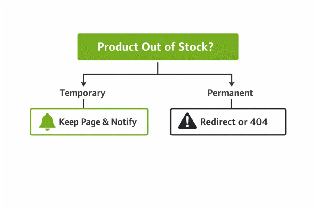 Your answer determines your entire strategy. Temporary shortages need one approach. Permanently discontinued products need another. Get this wrong, and you’ll damage your site’s search performance.